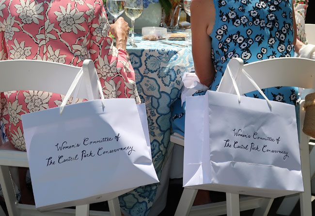 Fabric for the tablecloths that matched the blue and white themed event was provided by Scalamandré and floral décor was designed by Andrew Pascoe. Each guest received a traditional Central Park Conservancy matching umbrella from Wathne, Ltd. Central Park Conservancy volunteer hats were designed and donated by Patricia Underwood.